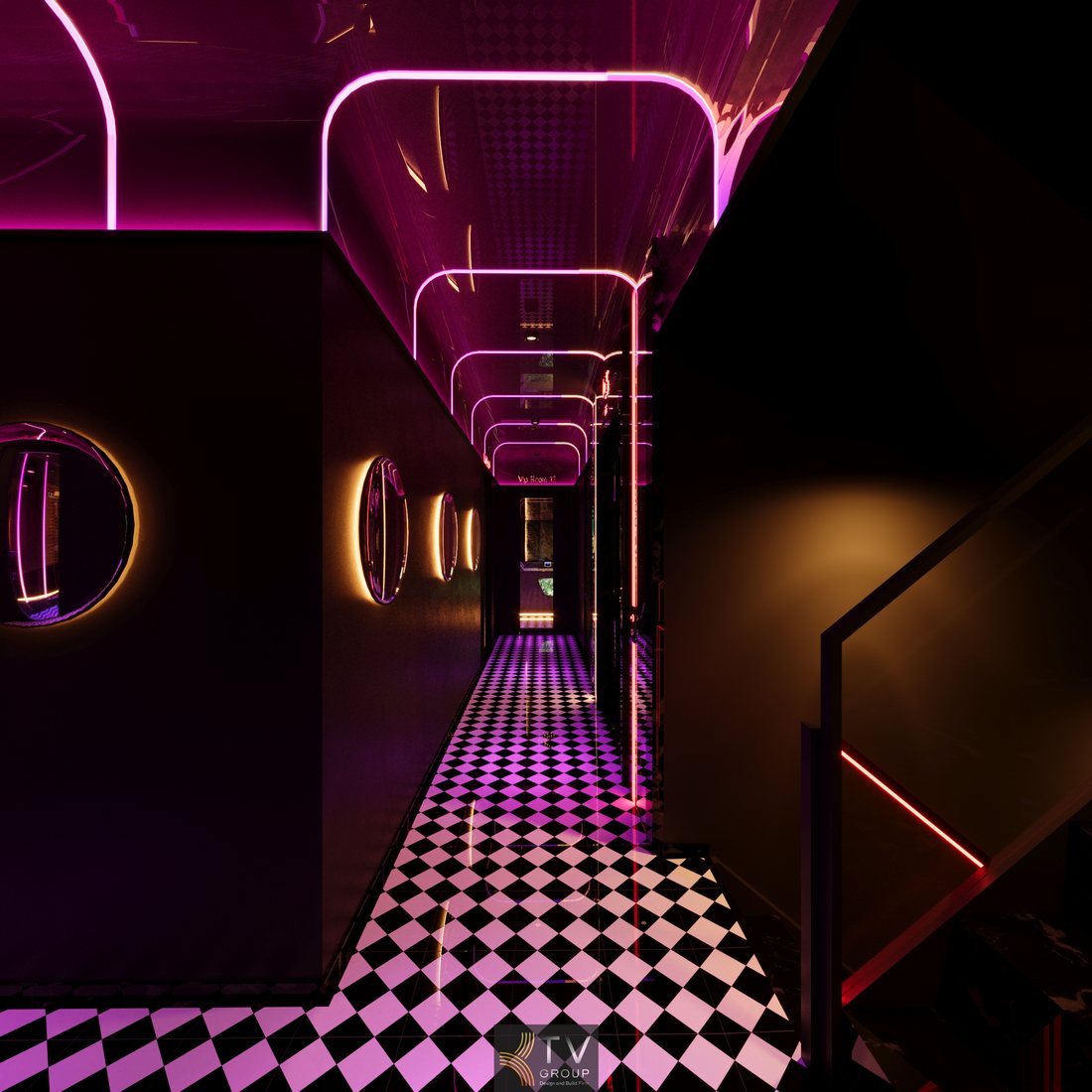 Mẫu thiết kế thi công hành lang dẫn phòng Massage VIP tầng 5 – Phong cách Luxury Neon Modern tại Quận 1 TP.HCM.Không gian hành lang Massage VIP được thiết kế phong cách Luxury Neon Modern, sử dụng ánh sáng LED nghệ thuật và vật liệu cao cấp, tạo cảm giác sang trọng, riêng tư và chuyên nghiệp cho khách hàng. (Lượt xem : 77 )