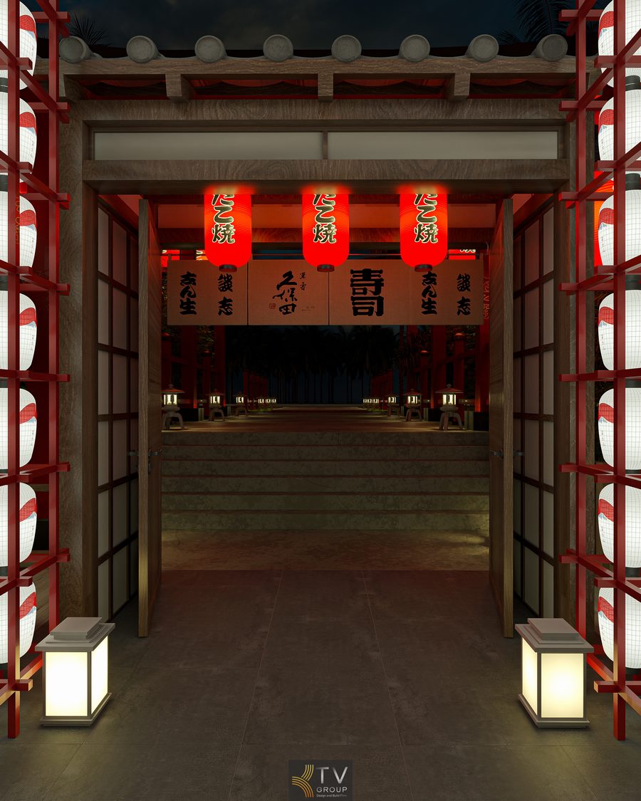 Dự án JAPAN BBQ là công trình nhà hàng phong cách Nhật Bản được thiết kế và thi công trọn gói, mang đậm dấu ấn kiến trúc truyền thống kết hợp cùng hệ thống ánh sáng hiện đại. Lối vào nhà hàng được tạo điểm nhấn bởi hàng loạt cổng Torii đỏ đặc trưng, dẫn dắt thực khách bước vào không gian ẩm thực Nhật Bản đầy tinh tế.